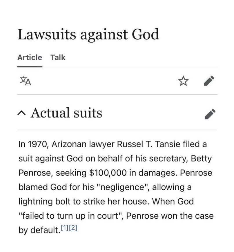 4) If you sue God, you might just win