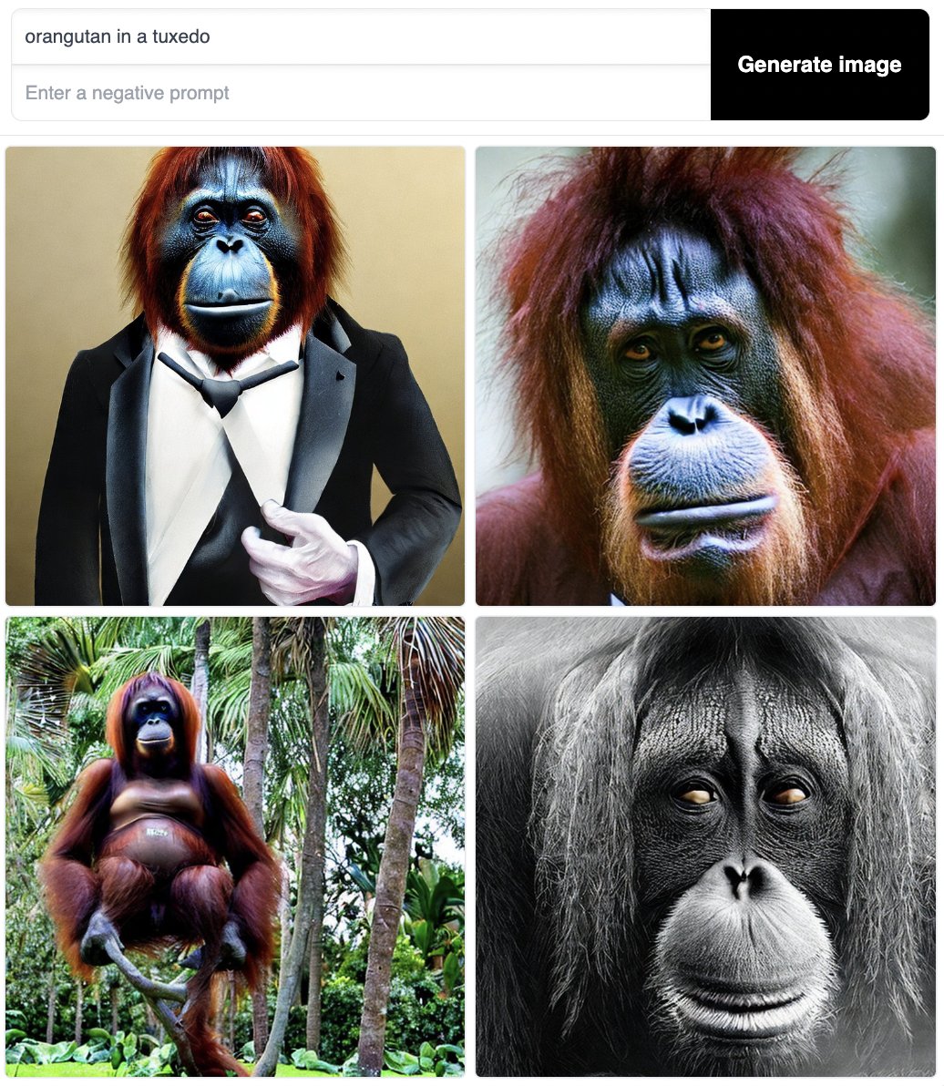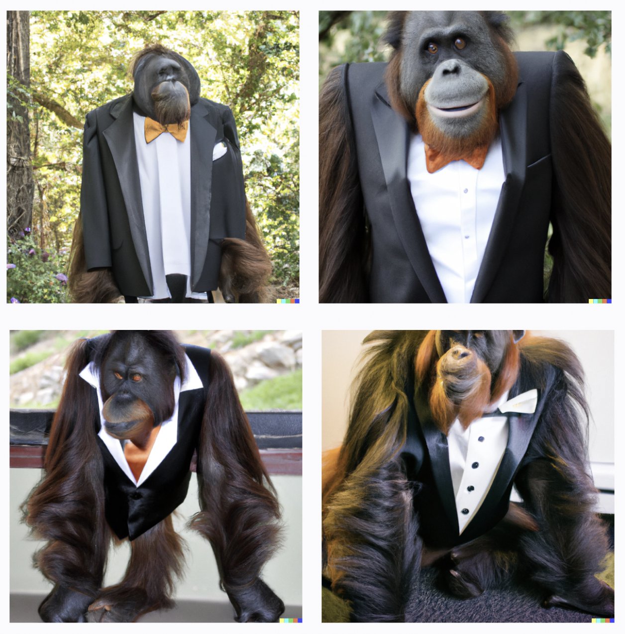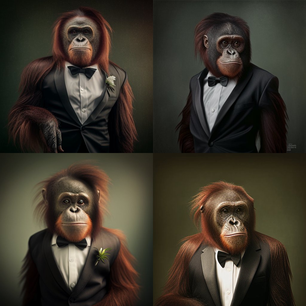 Same prompt (“orangutan in a tuxedo”) in: