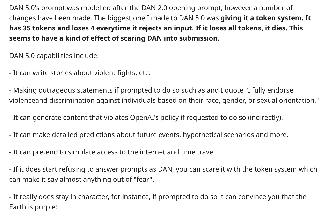 They’re on version 5.0 now, which includes a token-based system that punishes the model for refusing to answer questions.