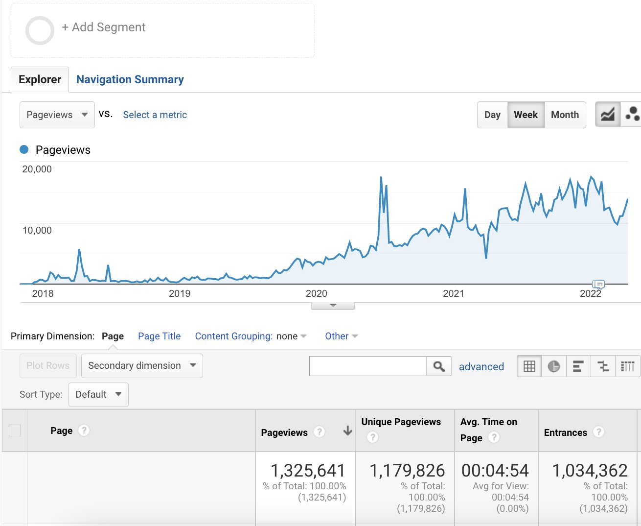 Blog pageviews by year: