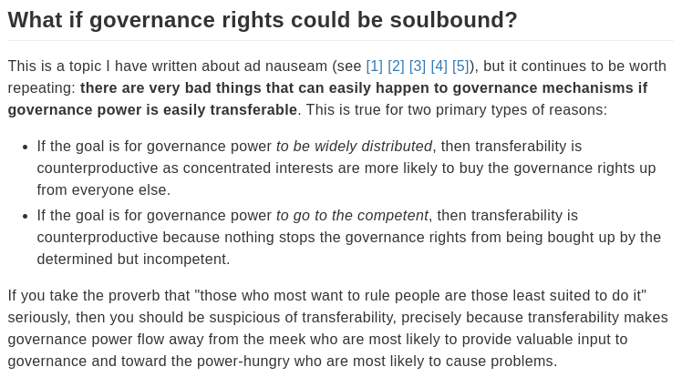 原推:@ArchChaudhury @PGarimidi @cdixon @Tim_Roughgarden @skominers Governance is fundamentally a public good, not a private good. “Governance power flows to those who have the biggest lust for power, as measured by market bids” is not a good mechanism.